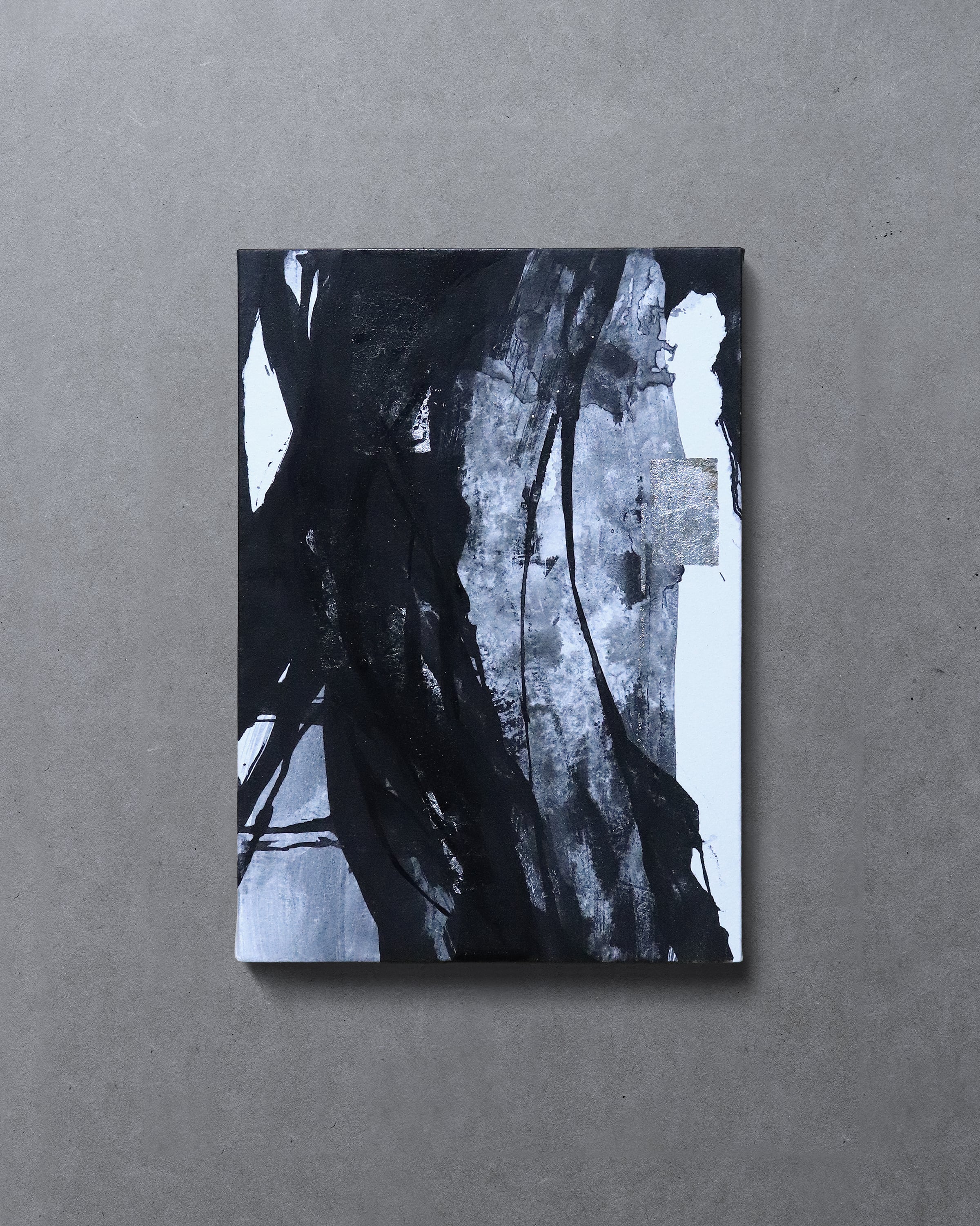 Sumi, silver leaf, mineral pigments,